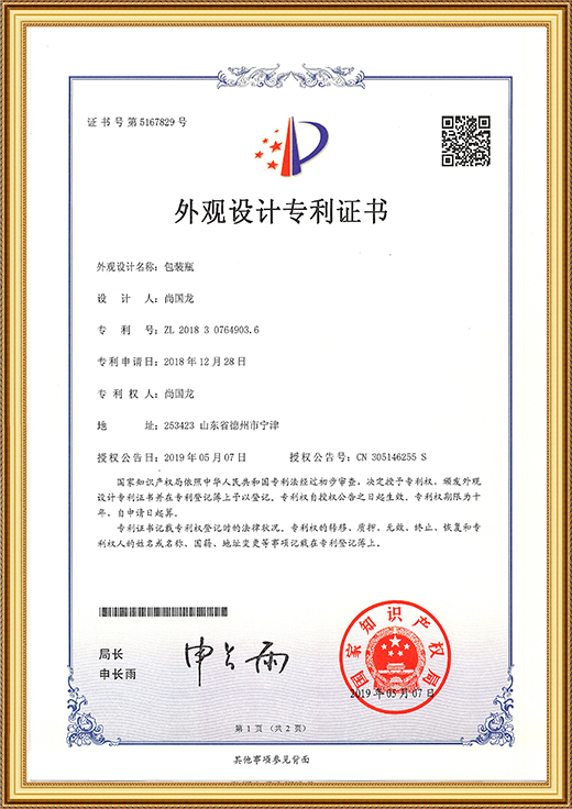 • 外觀設(shè)計(jì)專利證書